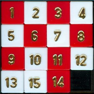 The 15-puzzle (also called Gem Puzzle, Boss Puzzle, Game of Fifteen, Mystic Square and many others) is a sliding puzzle that consists of a frame of numbered square tiles in random order with one tile missing.The object of the puzzle is to place the tiles in order by making sliding moves that use the empty space.